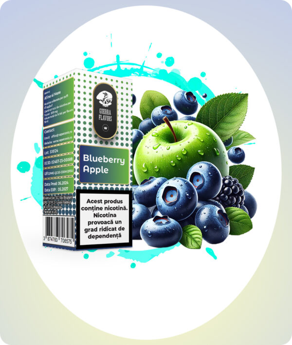 GuerraLiq Blueberry Apple aduce un gust natural, bine proporționat, susținut de 20mg nicotină salt pentru o vapare fină, curată și satisfăcătoare.