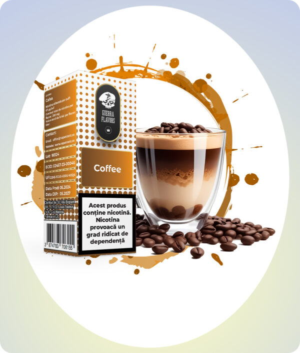 GuerraLiq Coffee Salt 20mg – aromă intensă, nicotină salt fină și 10ml de energie pură într-un puf.